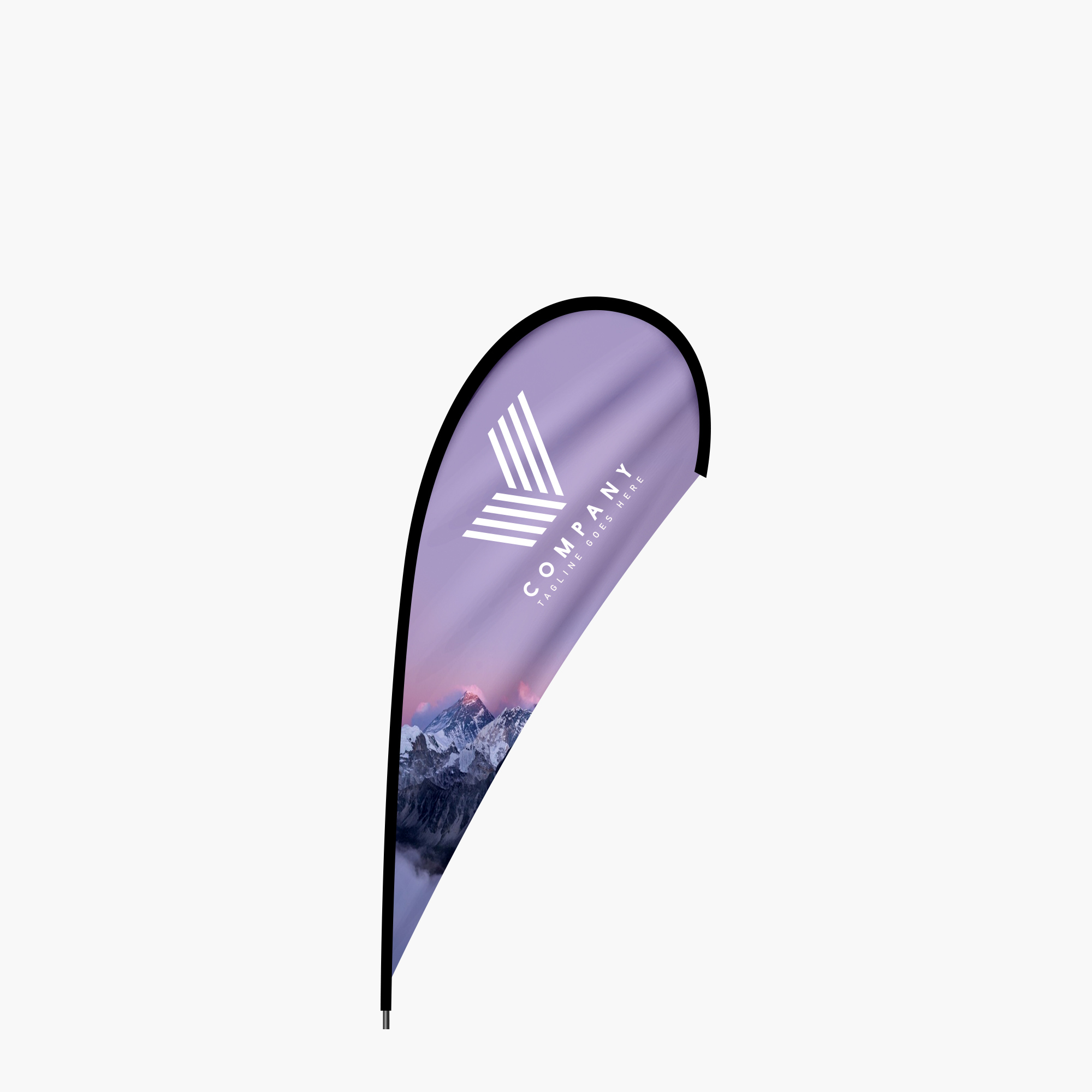 Teardrop flags have an iconic curved flag shape that looks good indoor and out. These full-color dye-sublimated flags offer a large design space.